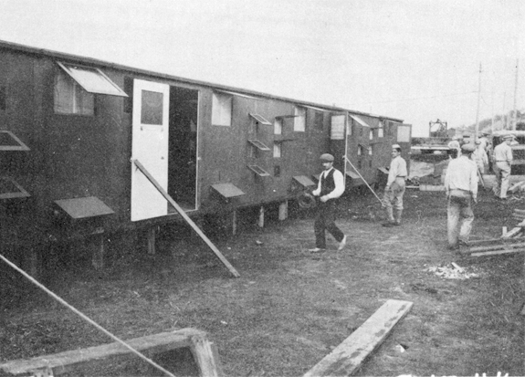 below: Prefabricated air evacuation ward; including one of the many Azorean workers that assisted in the construction projects