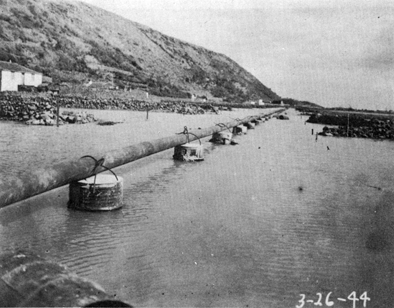 below: The 8" fuel pipeline extended from unloading facilities at water's edge to the tank farm, then to refueling areas at the airbase