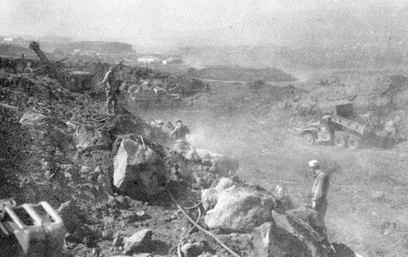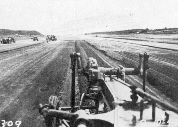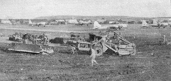 below: B-17s, bulldozers and scrapers, the weapons of modern warfare in World War II