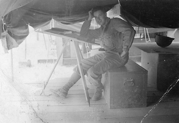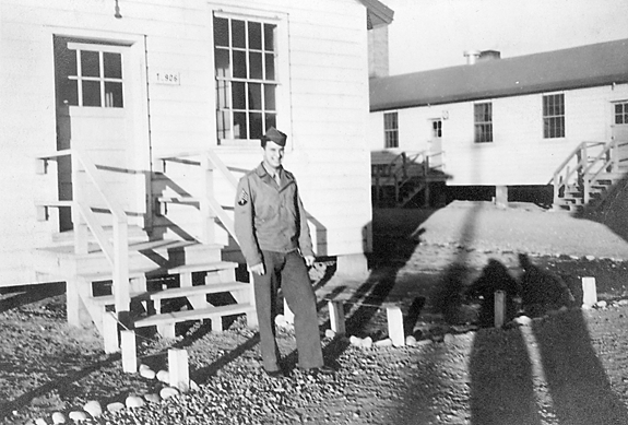 Below: Dad in front of the barracks, probably Gowen Field, Idaho in 1944