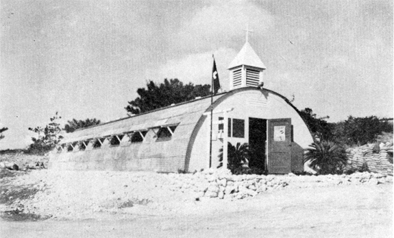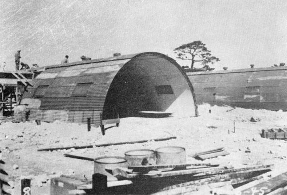 below: Erecting a Quonset utility building