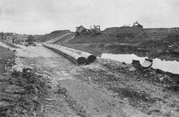 below: Constructing culvert under the runway at Kadena Airfield