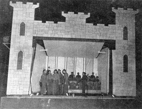 below: A peformance at the theater. The 801st Engineers made sure everyone knew who built it!