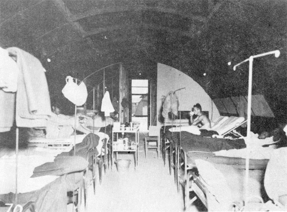 below: Inside a medical ward